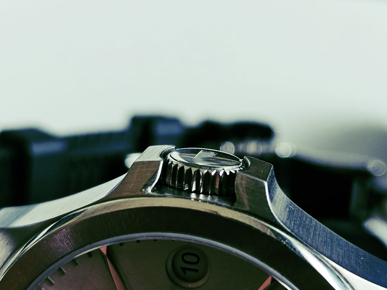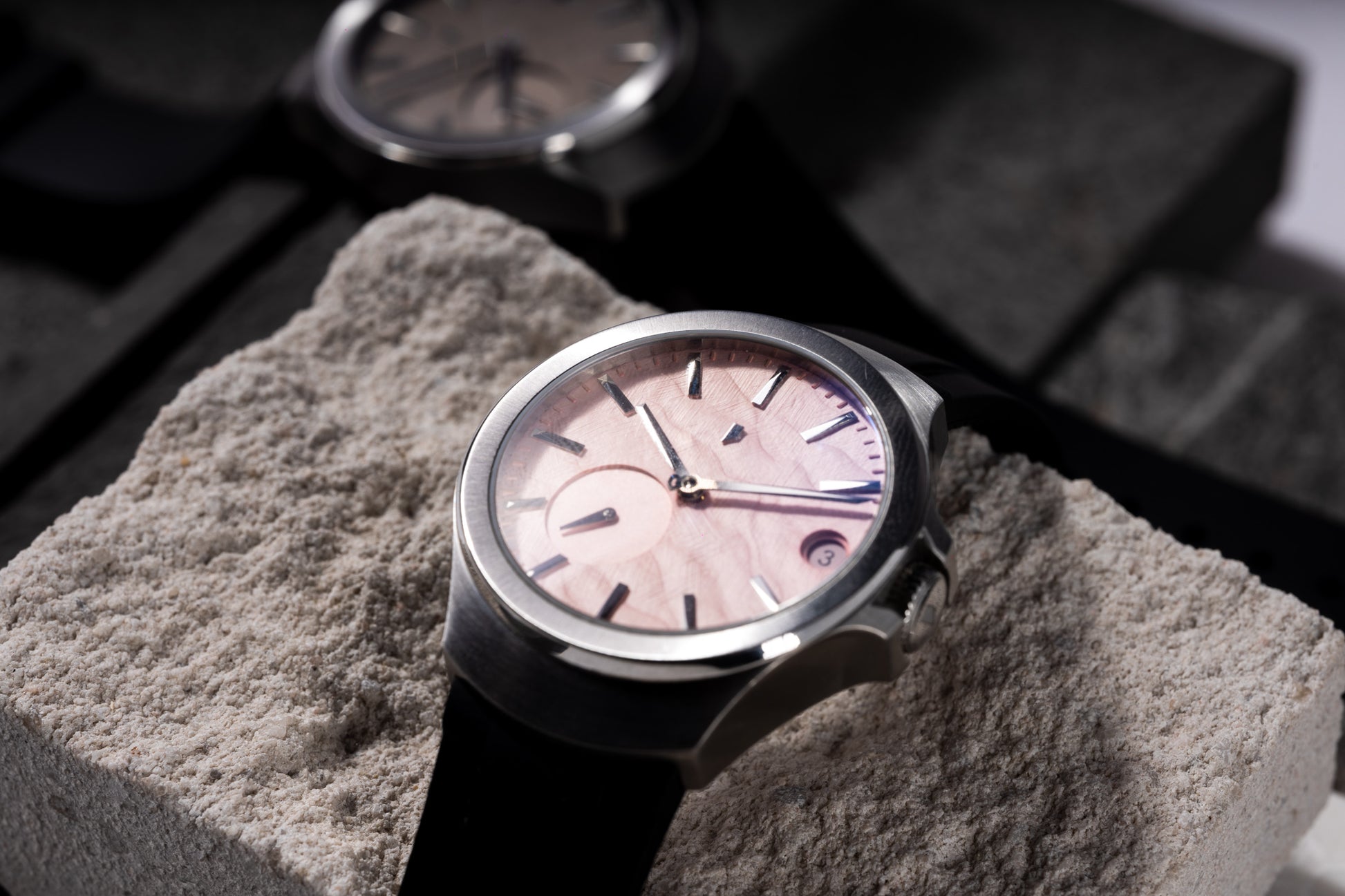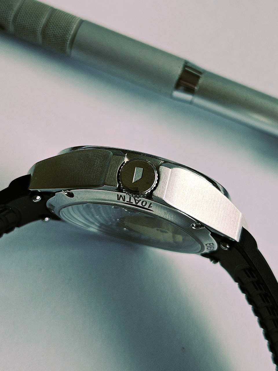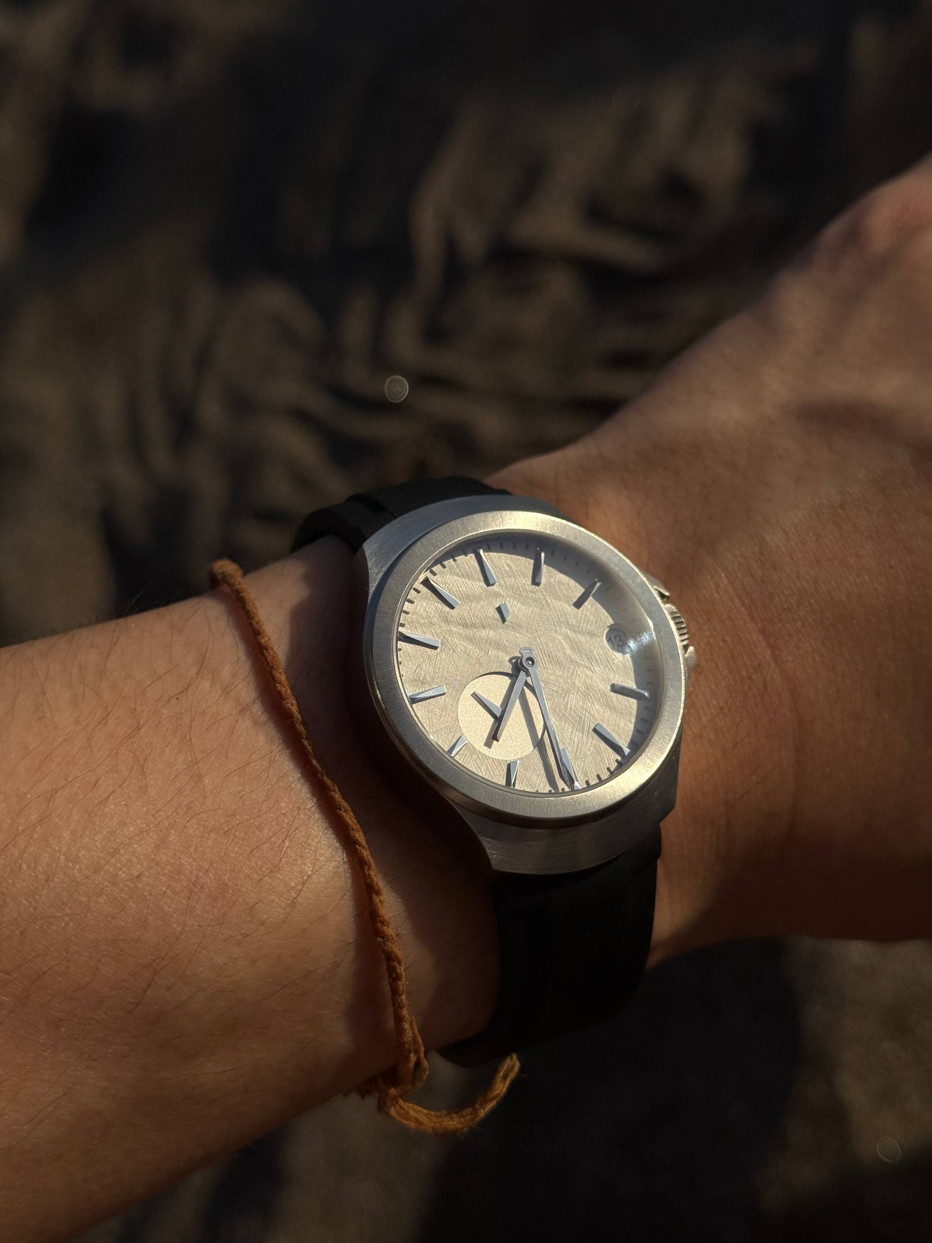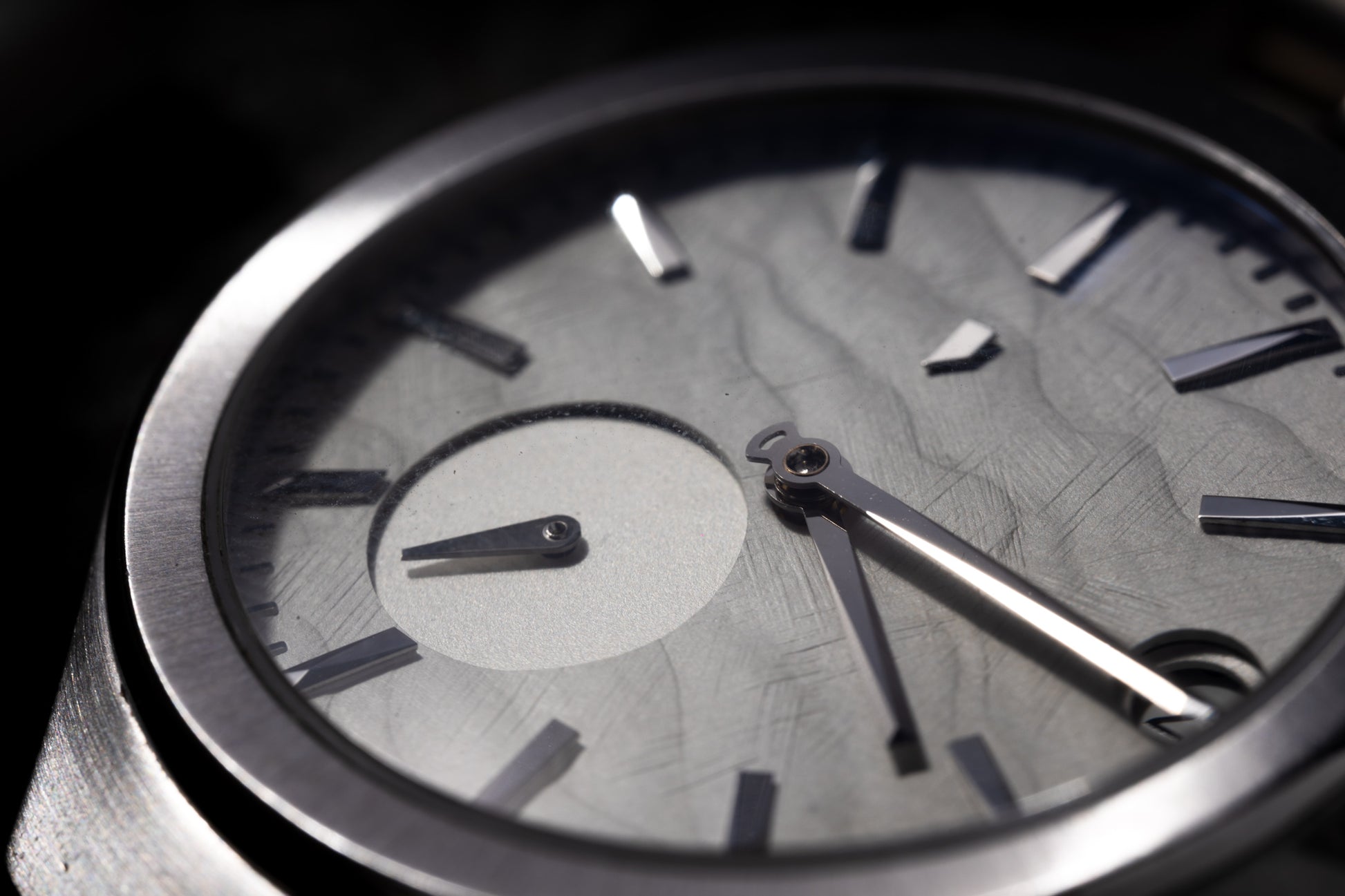 Dial: Textured dial with sandblasted subdial and colour-coded framed date window